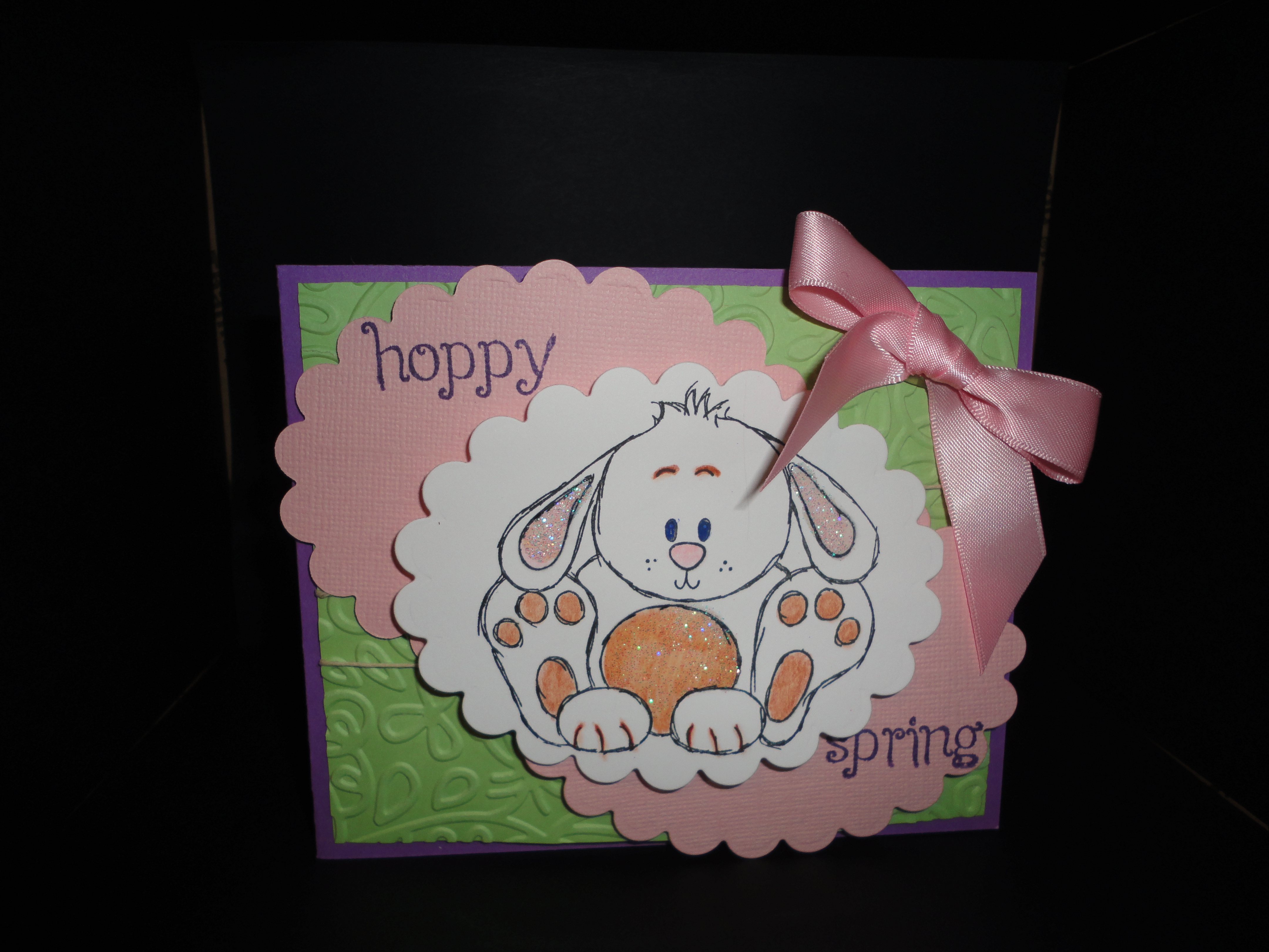 I love this little bunny. Great card. I like the glittery ears.