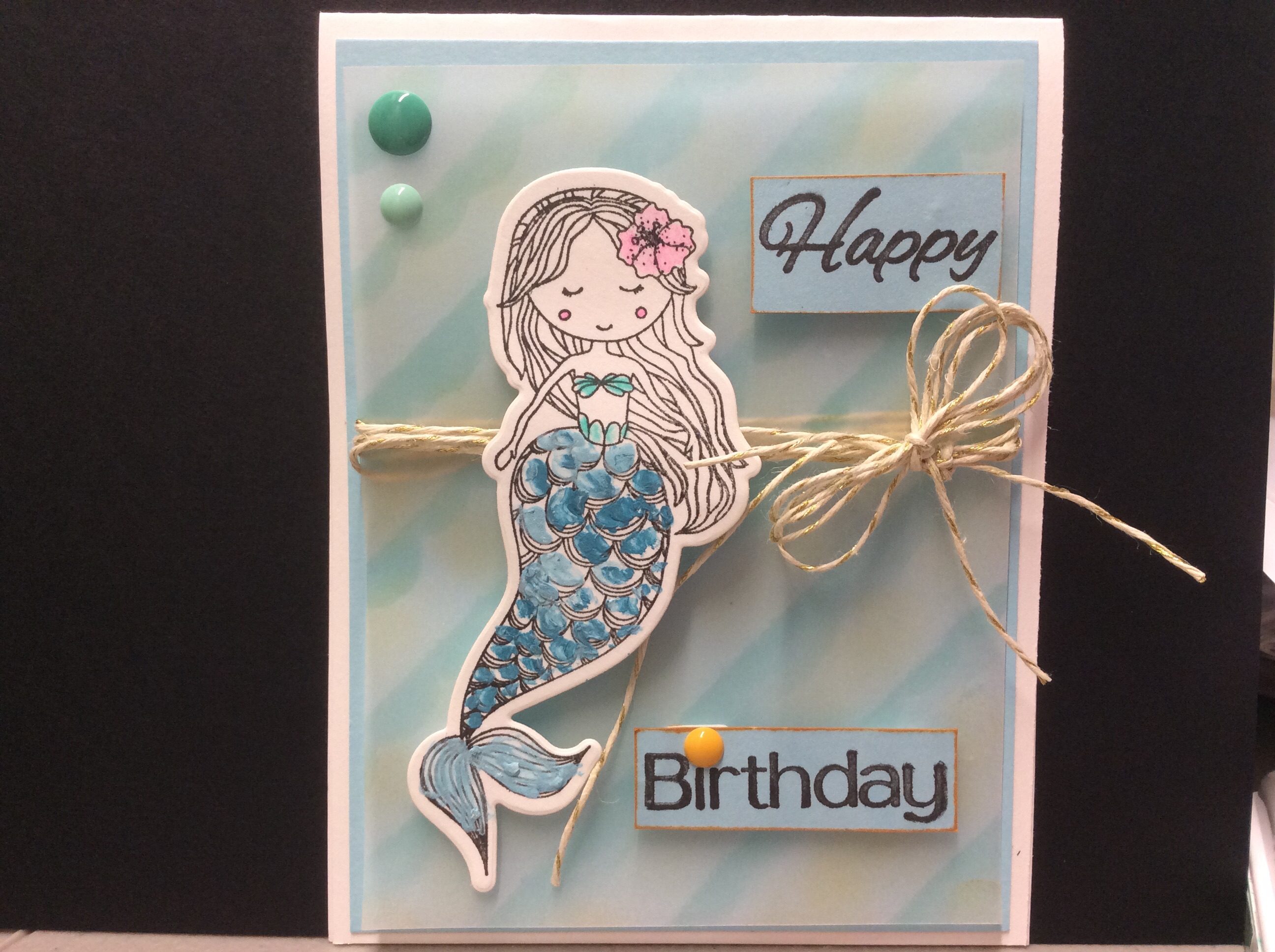 The mixed media is the mermaids tail. I mixed the Modeling Paste with the acrylic paint and used the Spatula TO-0089 to apply