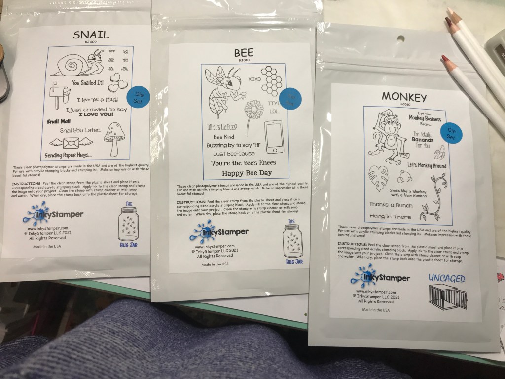 Two more fun cards I created from the new Stamp and Die sets, Snail and Bee from InkyStamper. These are all new releases.