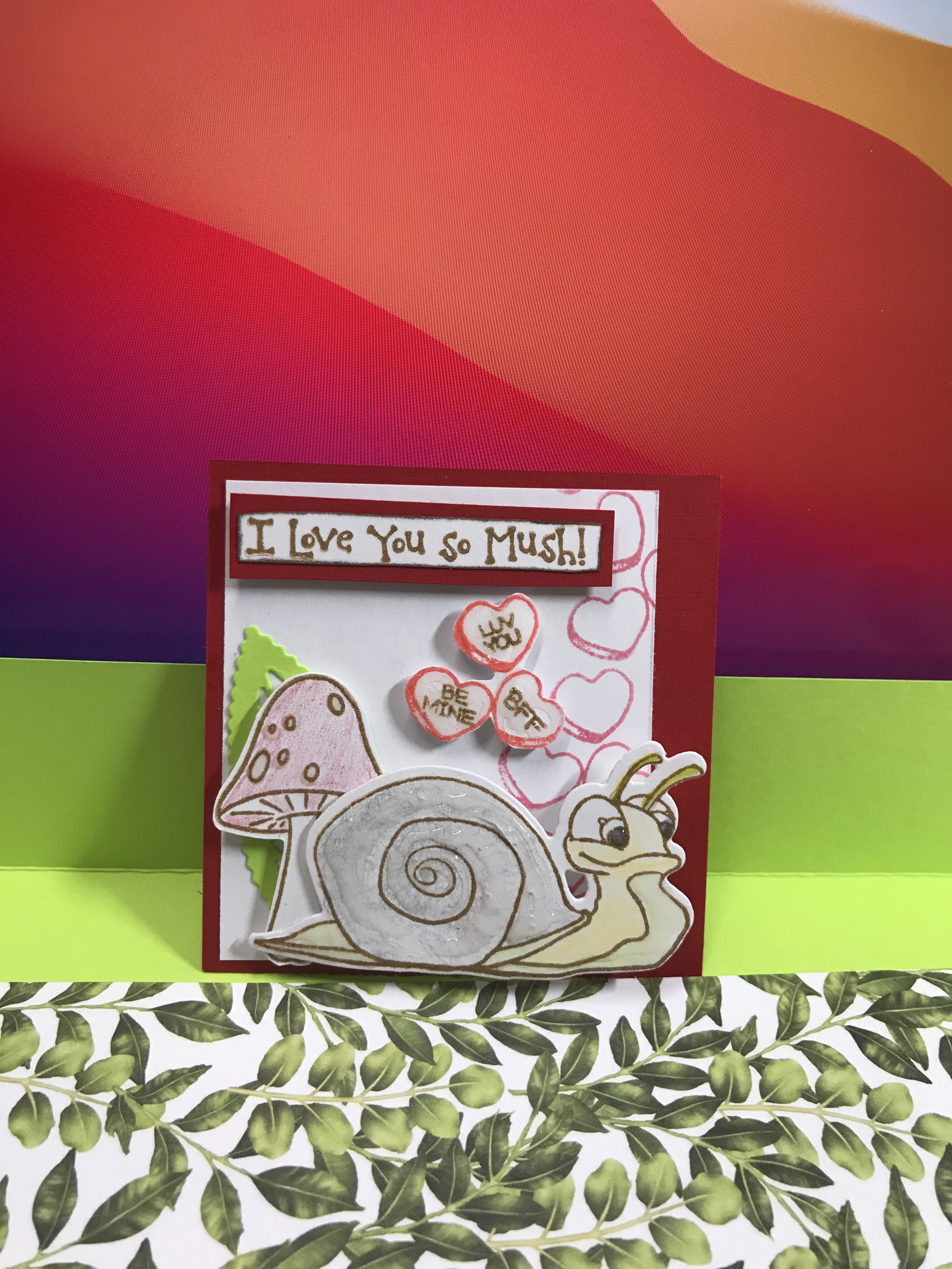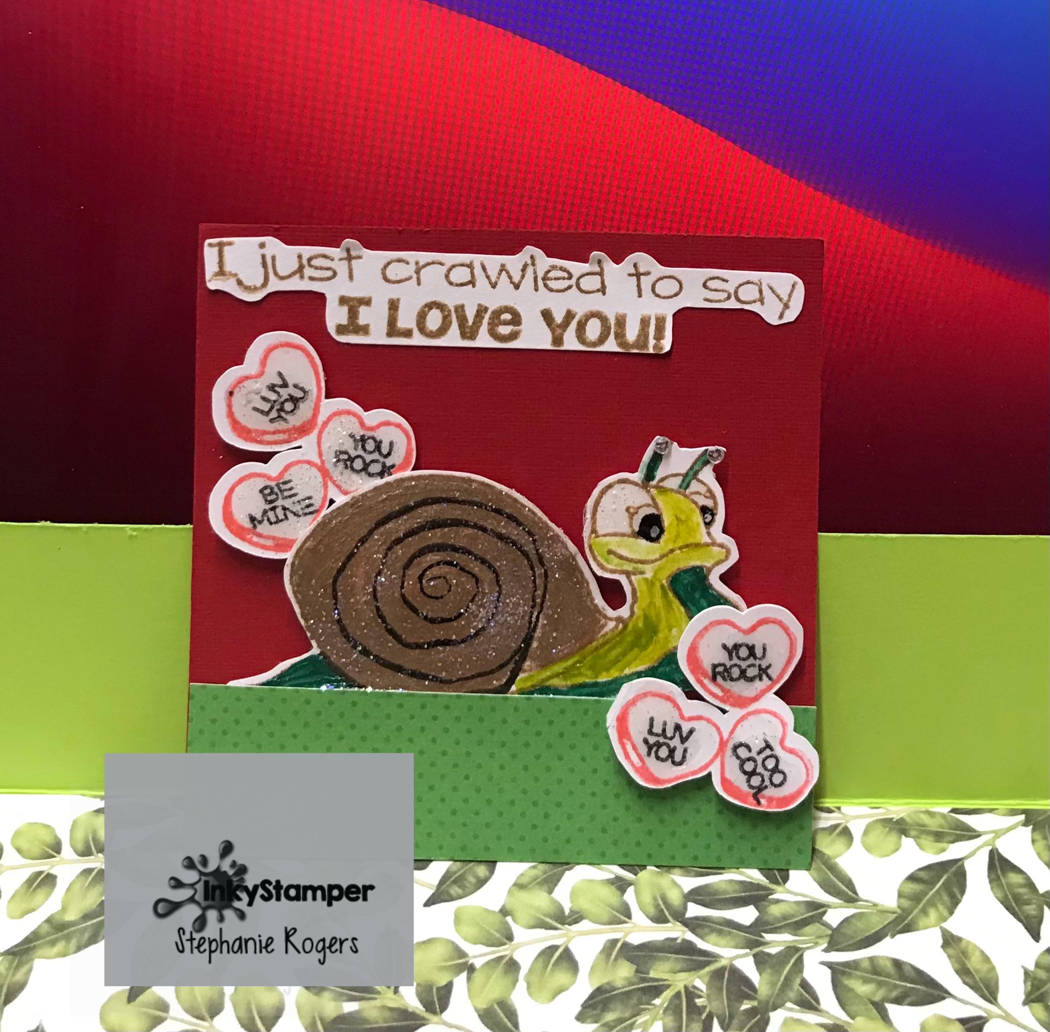 Made with CardStock from my scrap stash, InkyStamper’s Snail Stamp Set, BJ009,Nuvo Ink,Nuvo Watercolor pencils, Nuvo Crystal Glaze, foam Adhesive and craft glue.CardStock from my scrap stash, Inky Stampers Snail Stamp and Die set: BJ009, colored with Nuvo Ink, Nuvo Expanding Mousse and TCW Stencil butter. Nuvo Crystal Glaze and fine glitter from my stash.