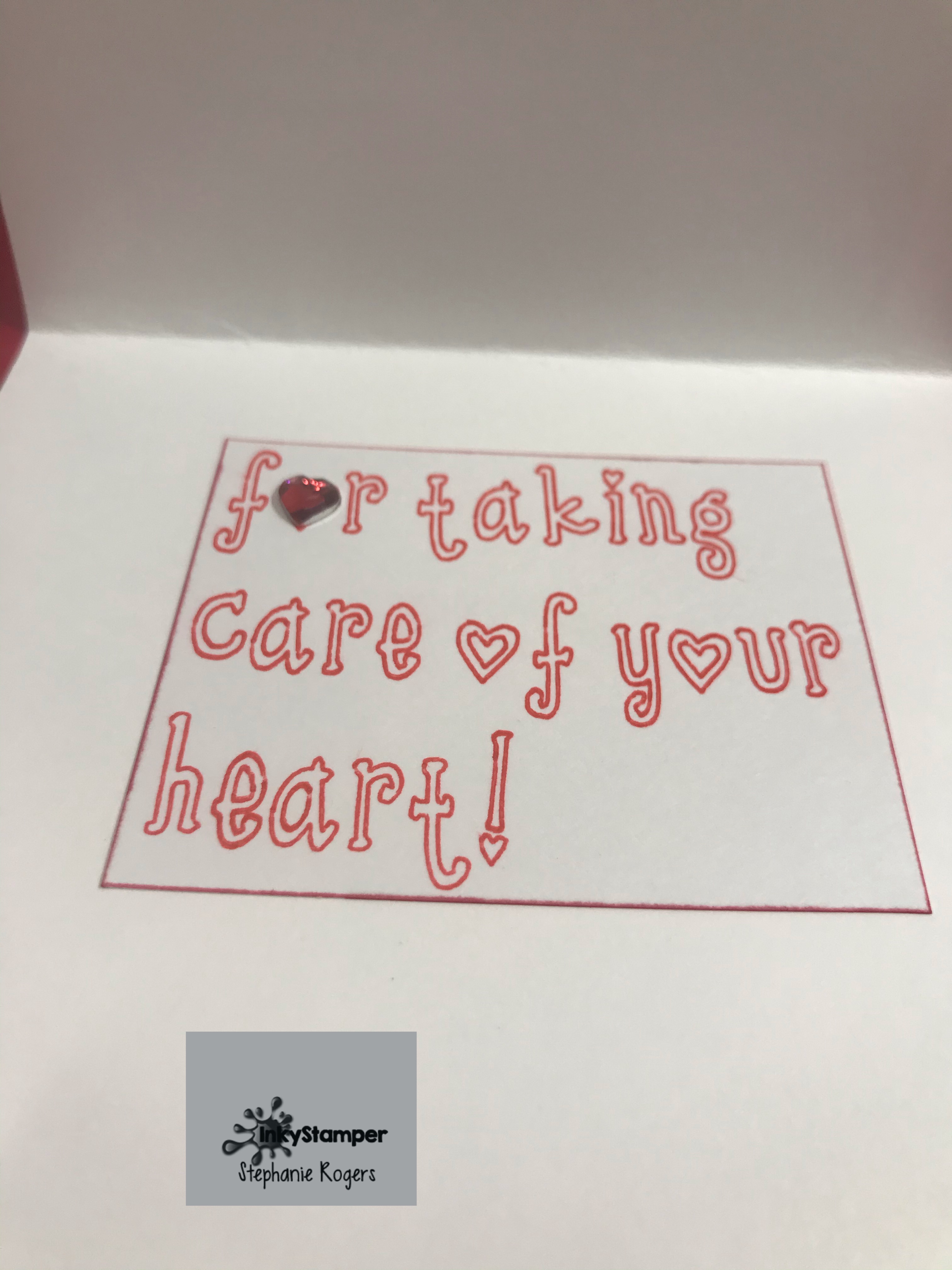 She was stamped with Nuvo Black Shadow Ink and colored with Copic Markers. The card was created with paper and ribbon from my stash and completing the look I embellished her with Nuvo Cherry Hearts, Miscellaneous Felt heart and writing courtesy of Cricut Design Space. I finished the card with Nuvo Crystal Glaze and fine glitter. Take care of your ❤️.