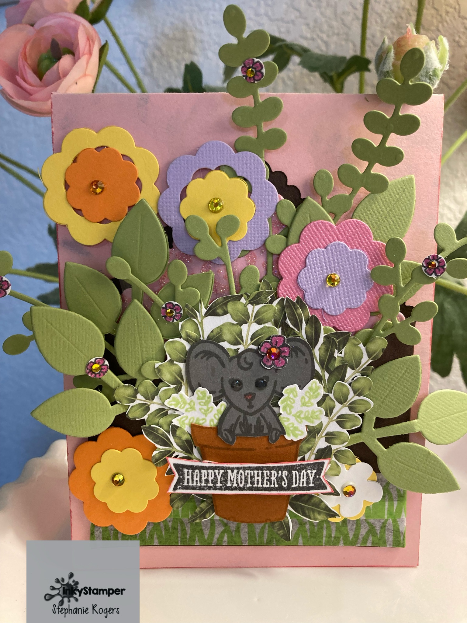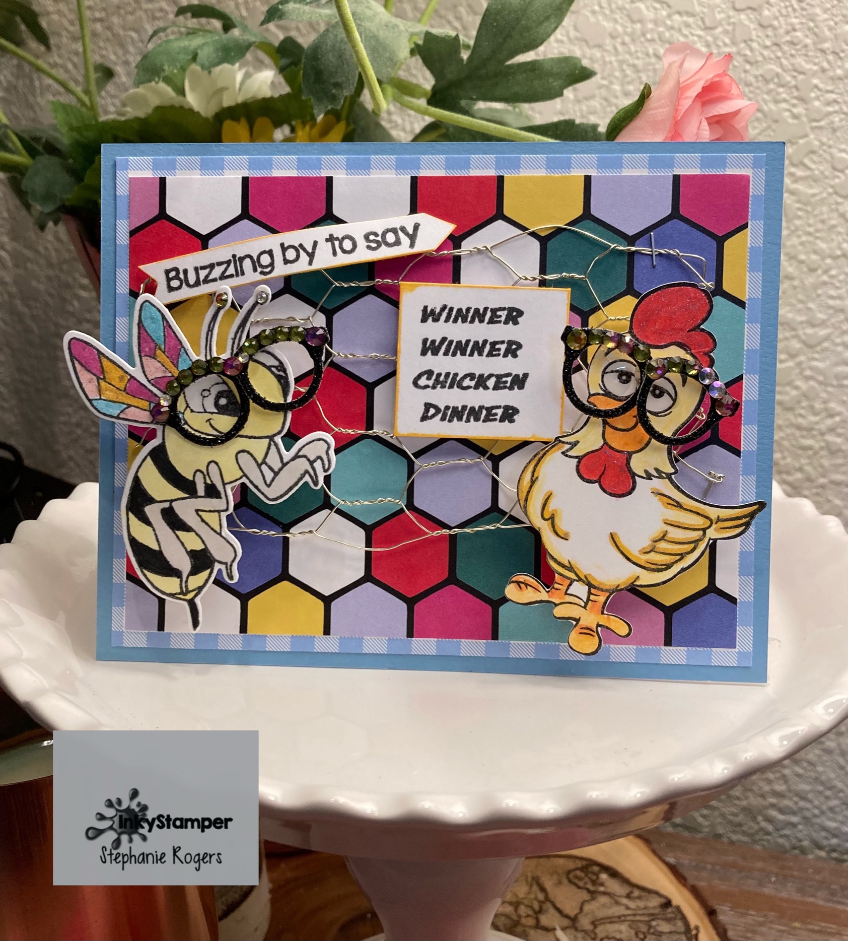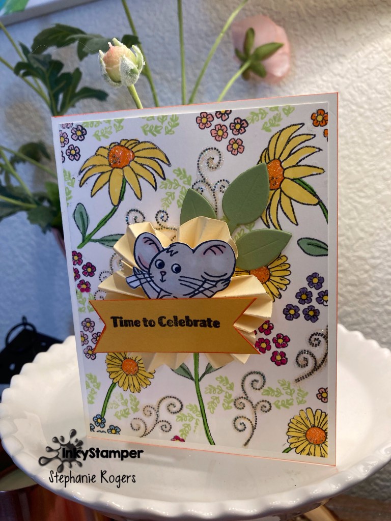 Designing this A2 card with 80 lb paper, Orange and grey from my collection. I stamped Cat on another designer type paper, also from my collection,using Momento’s Ink- Tuxedo Black. My inspiration was an Orange Tabby Cat a friend had posted on Facebook. Iused Neenah white for the sentiment and grey cardstock, also from my collection for the stamped background and the fish on the grey. I stamped the fish with clear embossing ink and used white embossing powder. I distressed the whole card with Momento’s Tuxedo Black Ink and completed the card with Black Twine, Copic marker for the Cat’s collar and finished with a heart ♥️ gem from Nuvo’s Cherry Heart gems and Nuvo’s Crystal Glaze.