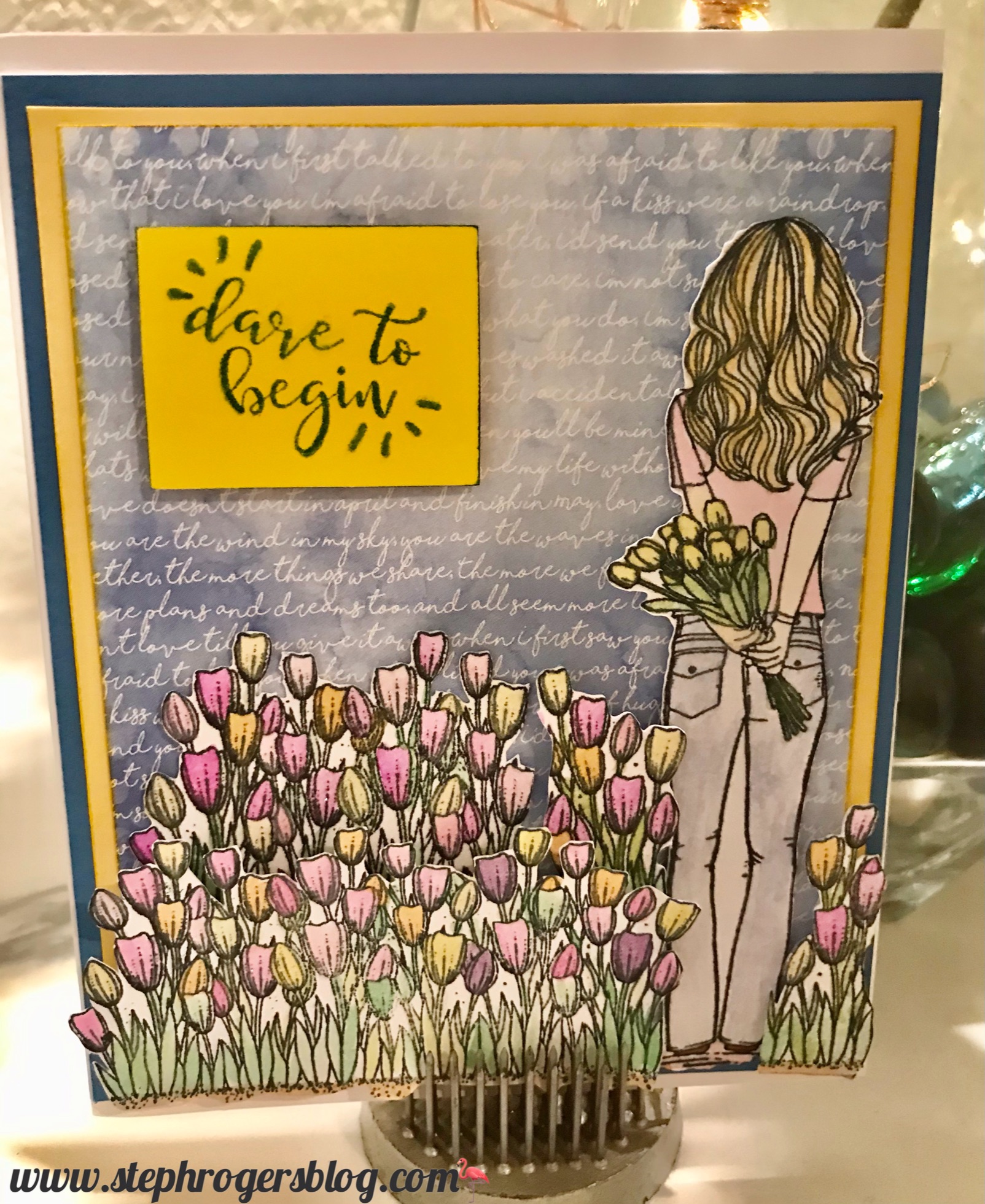 Saturday’s fun begins with cardstock from my stash and from Design My Craft. I inked up the new stamp “Begin Anew” from Unity Stamp with Memento’s Tuxedo Black and heat set. I watercolored the image with Nuvo’s Watercolour Pencils. I completed the images with Spectrum Noir’s Sparkle Pen. I really enjoyed crafting this card and I hope you enjoy it too.
